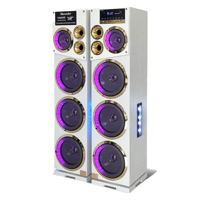 اسپیکر مکسیدر مدل Maxeeder TN111 Home Player در رنگ زیبای سفید با رینگ طلایی دور ساب ها و بدنه از چوب مقاوم برای افزایش کیفیت صدا. دارای نورپردازی با افکت های جذاب و توری محافظ فلزی باند ها. تجربه یک خرید لذت بخش از ری کالا
