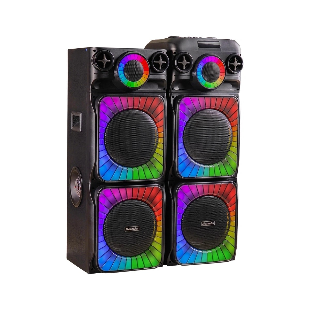 | توضیحات اسپیکر | ریموت کنترل و نمایشگر led بروی اسپیکر-میکروفون بیسیم با صفحه نمایش دیجیتال-بلوتوث نسخه 5.0-قابلیت تغییر صدا به حالتهای مختلف-قابلیت اولویت میکروفون (Microphone priority)-کارائوکه -دارای رقص نور سقفی-نورپردازی با افکتهای متنوع- رقص نور چرخشی دور سابها- چهار نور جانبی Light Ball- دارای 4 ساب 12 اینچ و تیوتر-ضبط صدا-قابلیت تنظیم اکولایزر و بیس-افکتهای صدای دیجی |