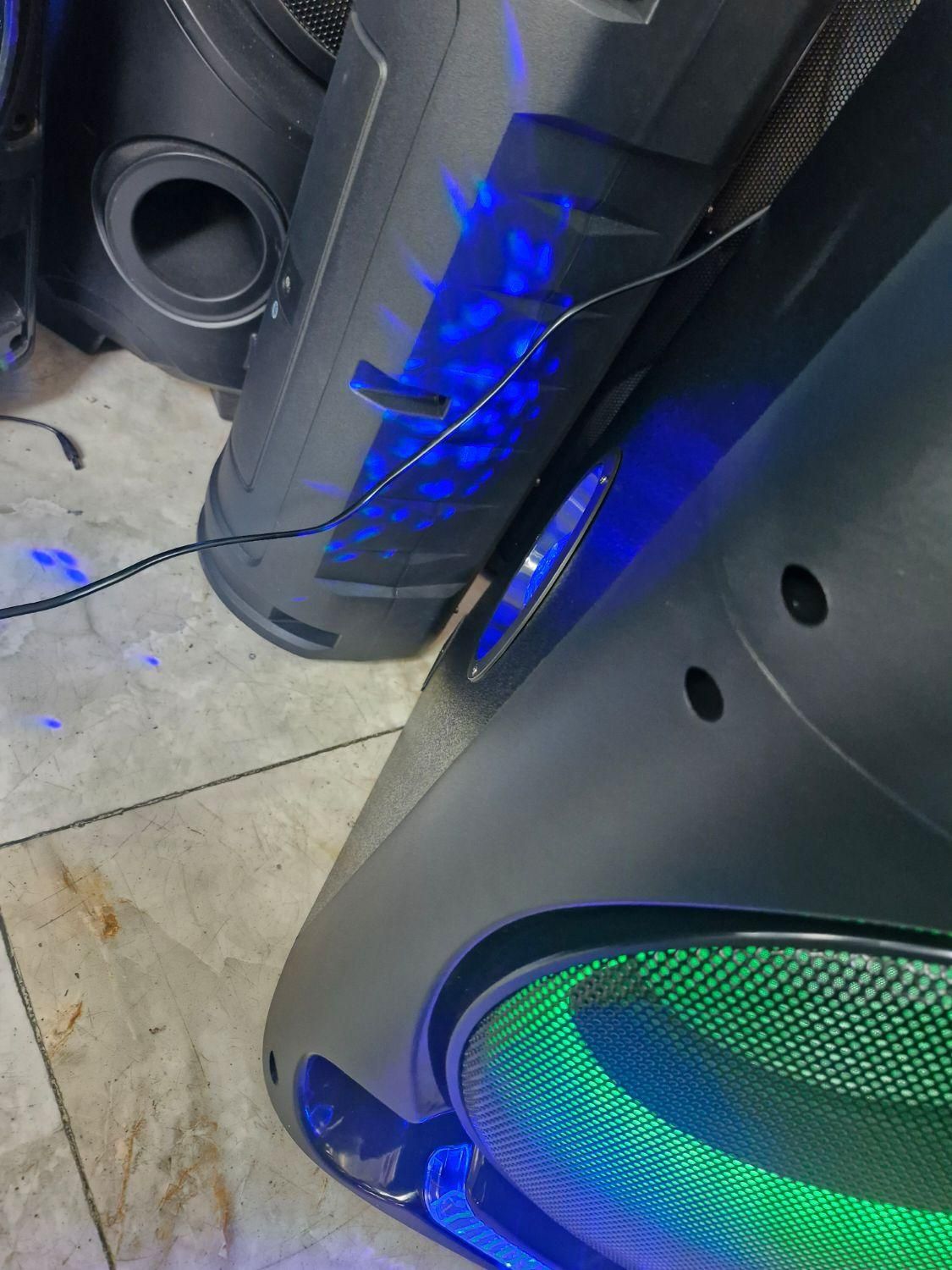 | توضیحات اسپیکر | دارای اولویت میکروفون (Microphone priority)-قابلیت تغییر حالت های مختلف نورپردازی - دارای خروجی ویدئو-دارای اکولایزر -دارای 2 ورودی حافظه- دارای 2 بلوتوث-دارای 4 ورودی USB-دارای رقص نور چرخشی RGB دور ساب ها-ورودی اپتیکال و کواکسیال - پشتیبانی از فرمتهای صوتی MP3 و تصویری MP5، امکان تنظیم بیس و تریبل، اکولایزر، اکو و ولوم میکروفون، و قابلیت کارائوکه با حذف صدای خواننده - امکان کنترل دستگاه از طریق اپلیکیشن موبایل و ریموت کنترل همراه - طراحی مدرن با توری محافظ فلزی و چرخهای حمل آسان برای جابجایی راحت |