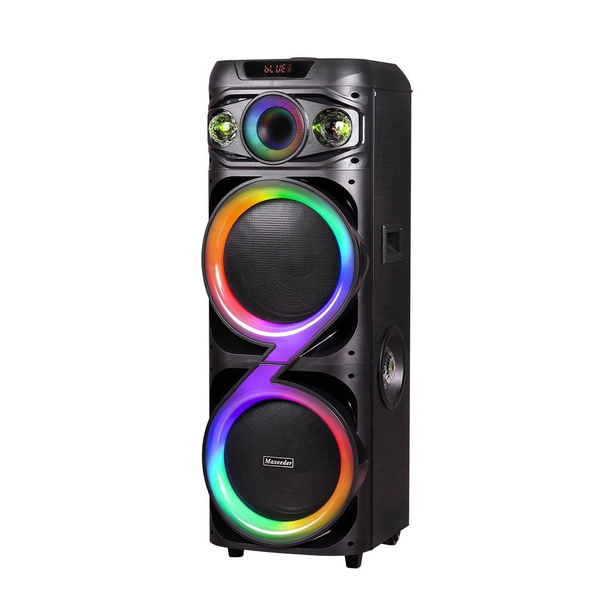 در قسمت جلویی اسپیکر دو ساب ووفر ۱۲ اینچی قرار گرفته که با کمک گرفتن از آنها میتوانید صدایی رسا و فراگیر را در جشن خود به وجود آورید. اگر به فکر استفاده از باند خانگی مکسیدر برای برگزاری مراسمات بزرگ هستید، قابلیت تی دبلیو اس برای شما مفید خواهد بود.
