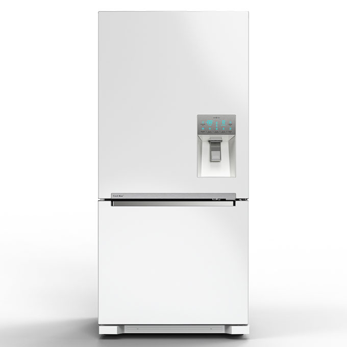 فریزر در پایین است و ۳ کشو مجهز است. کشو هایی جادار با سیستم روشنایی HANDLE LED میباشد. این کشو ها شفاف میباشد و مقاومت بالایی دارد. درب فریزر به سمت راست باز میشود و به سیستم انجماد سریع نیز مجهز است.