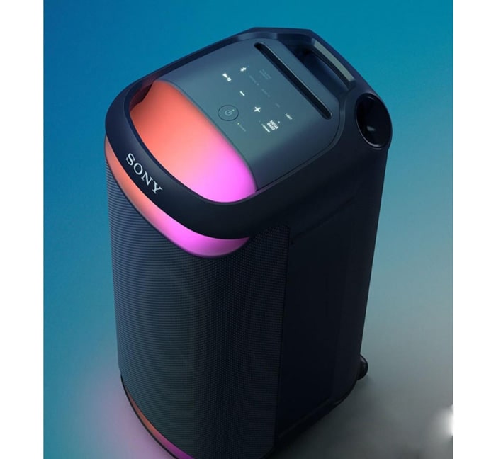 یکی از قابلیت های ویژه ای که اسپیکر قابل حمل سونی مدل XV800 دارد، و در زمان خرید اسپیکر برای دوستداران این کالا مهم است، قابلیت کارائوکه است. که همانطور که گفتیم با اتصال میکروفون به دستگاه میتوانید صدای خود را به رخ بقیه بکشید. فقط آهنگ خود را انتخاب کنید، میکروفون را وصل کنید و آواز بخوانید. از آنجایی که XV800 دارای دو ورودی است، میتوانید گیتار را هم وصل کنید و از اسپیکر به عنوان آمپلیکننده استفاده کنید و لذت ببرید. یکی از مزیت های اسپیکر شارژی سونی مدل XV900 داشتن نورپردازی است. با روشن کردن دستگاه و فشار دادن دکمه لایت از روی دستگاه میتوانید چراغ های LED دستگاه را روشن کنید و از فضای رنگارنگ خود لذت ببرید. کمپانی سونی در این مدل از دو بلندگوی قدرتمند X-Balanced Speaker استفاده کرده است که صدایی باور نکردنی را تولید میکند. وجود ۵ تیوتر در کنار و جلوی اسپیکر صدا را به صورت زاویه ای پخش میکند که در هر نقطه ای که باشید صدا واضح میرسد.